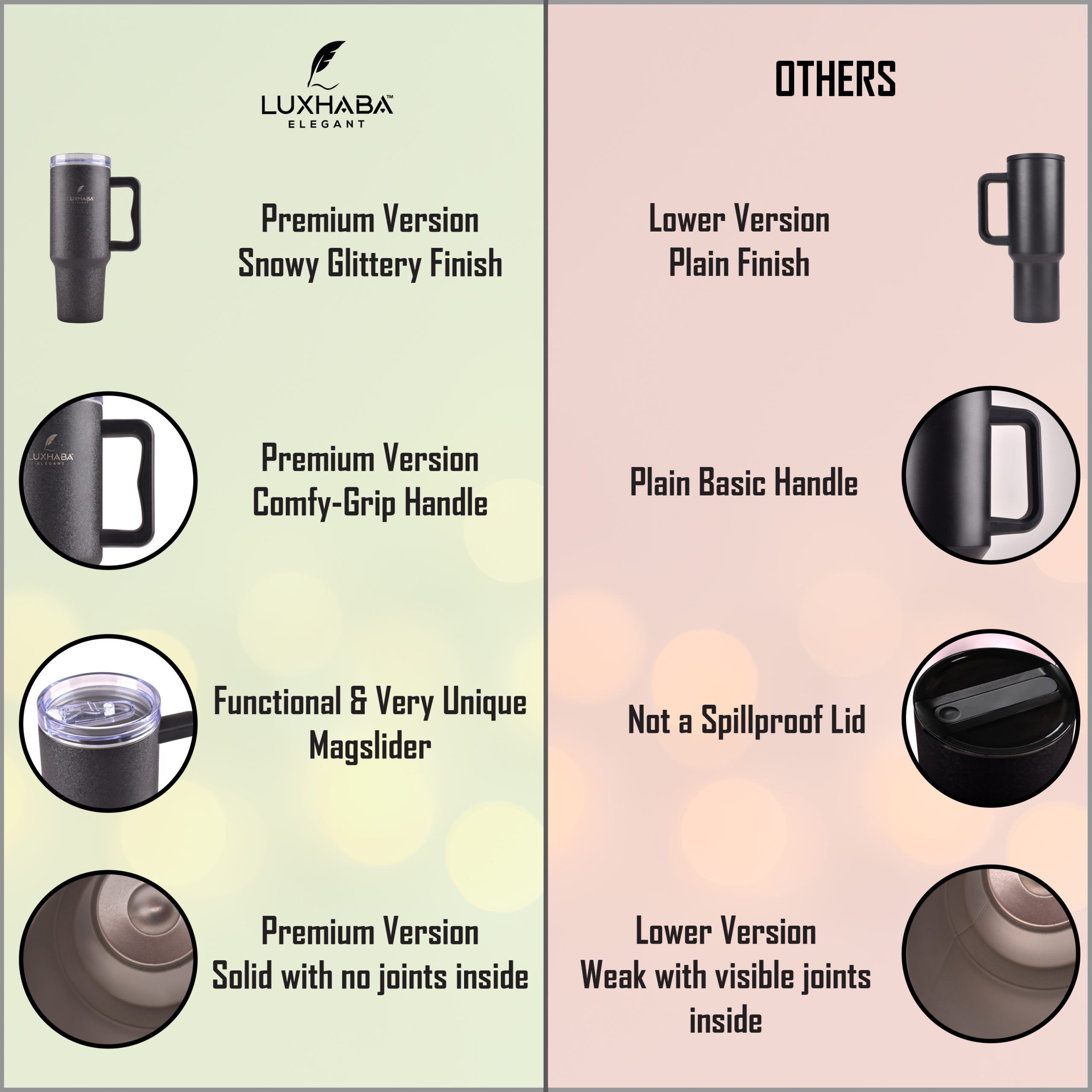 LUXHABA 1200 ML Stainless Steel Insulated Tumbler with lid and Straw. 100% Leak Proof Lid | Insulated Tumbler | Travel Coffee Mug | Double Insulated Vacuum Flask Keeps Beverages Hot & Cold (BLACK)